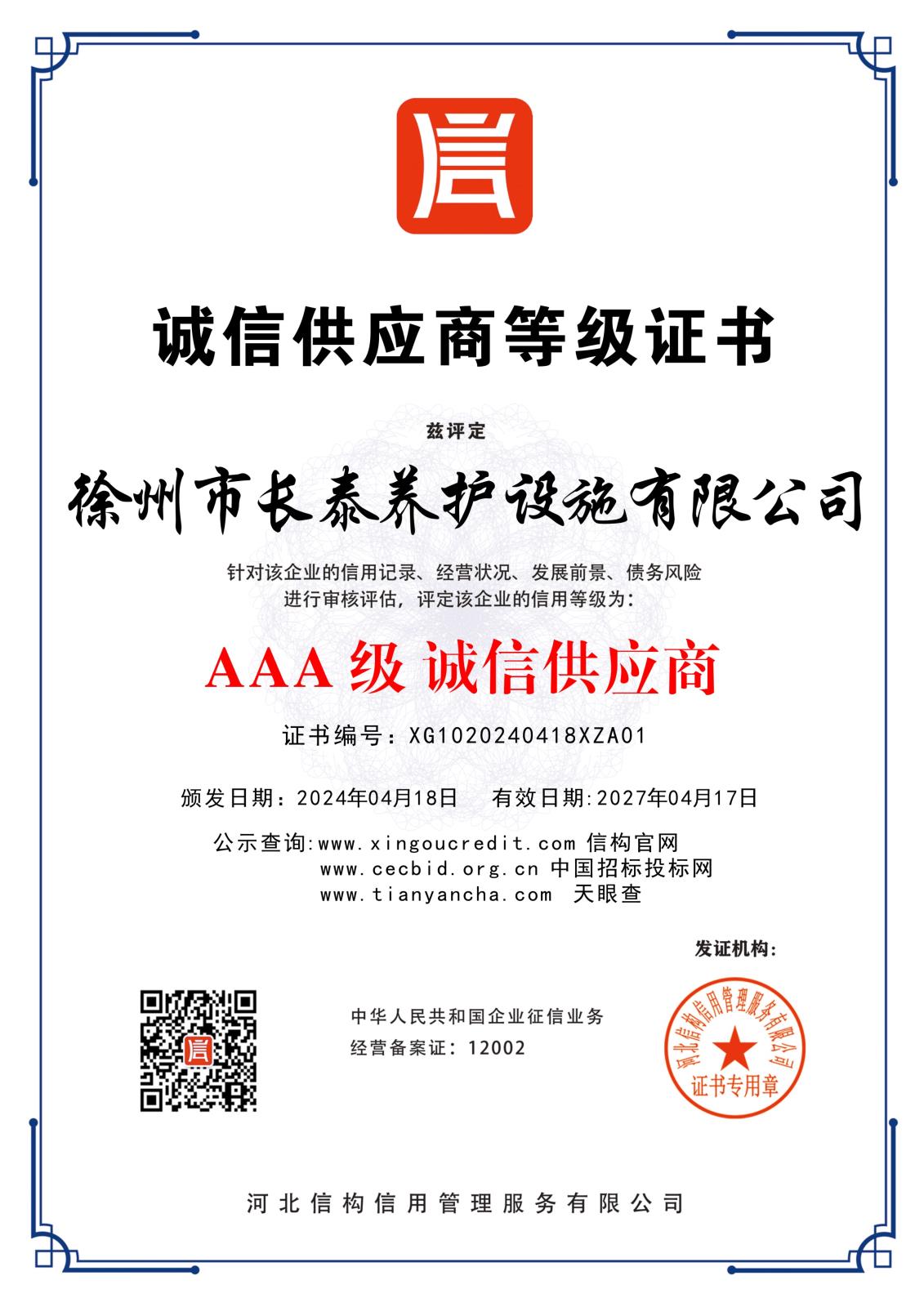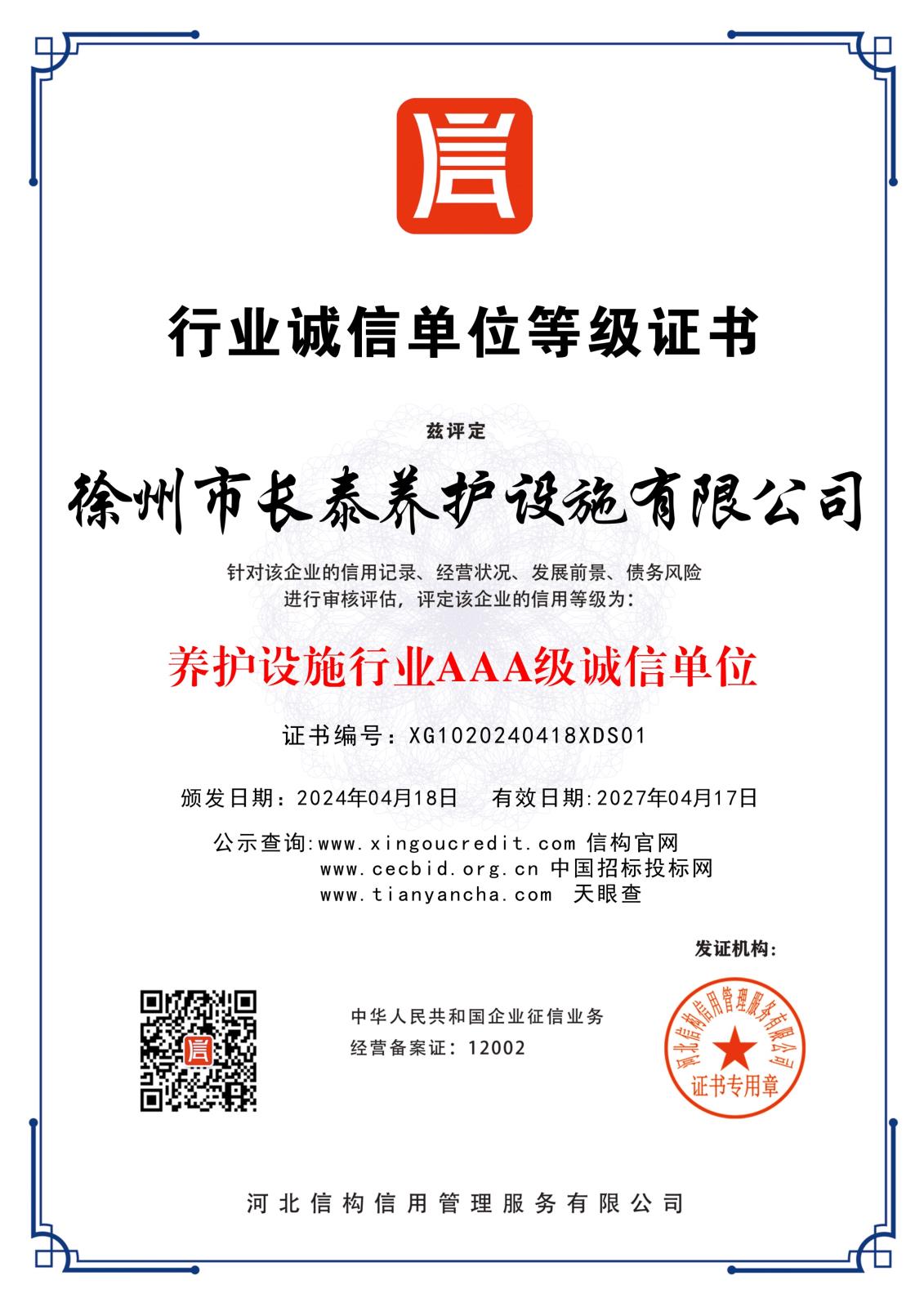 公司名稱:徐州市長泰養(yǎng)護設施有限公司